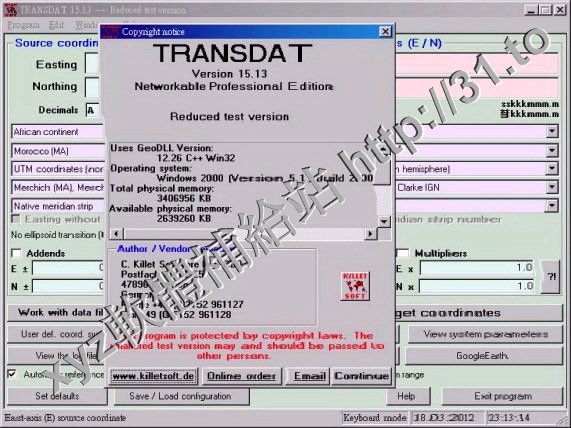 Killetsoft TRANSDAT v17.18 英文正式版(地理坐標轉換軟體)