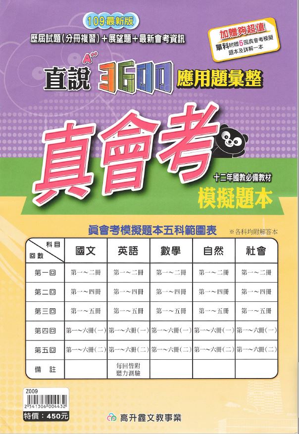 109年 國中會考 真會考 高升鑫 直說3600 A++ 模擬題本 五科合一 應用題彙編 會考題庫