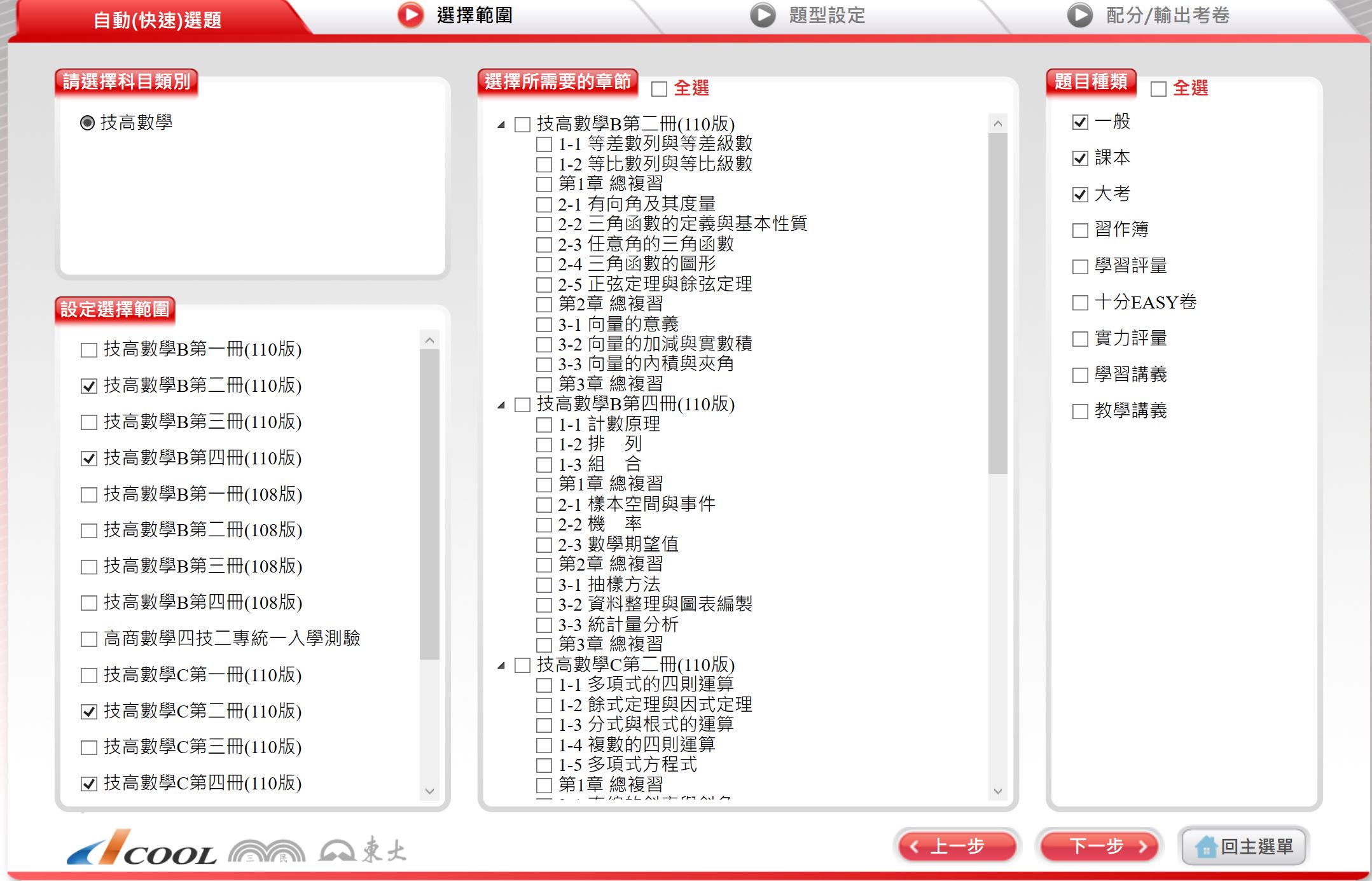 DAE0290--112學年下學期 技術高中命題光碟 三民東大版 數學科(B版、C版 1-4冊)(108課綱) 題庫光碟