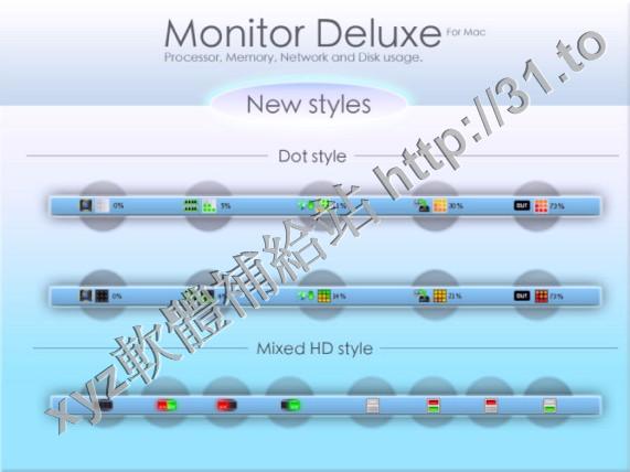 • Monitor Deluxe v1.3 MacOSX 英文正式版(顯示CPU,內存,網絡和磁盤使用情況的軟體)