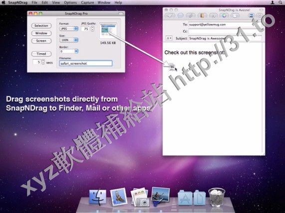 例如,通過電子郵件發送的截圖,你會拖截圖從SnapNDrag的郵件應用程序。就是這麼簡單。沒有