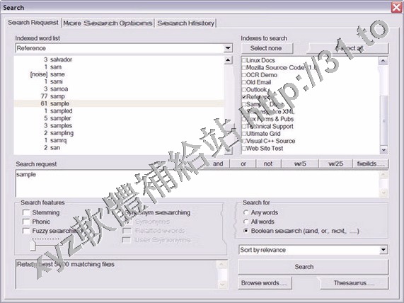 二十多個搜索選項,大部分搜索只需要不到一秒鐘。可自動識別字處理軟體、數據庫、